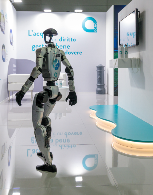 Allo stand è possibile conoscere Albert, l'assistente robotico umanoide dotato di intelligenza artificiale, capacità di movimento e sensori avanzati, sviluppato per supportare gli operatori che si occupano della manutenzione e gestione delle infrastrutture Acea