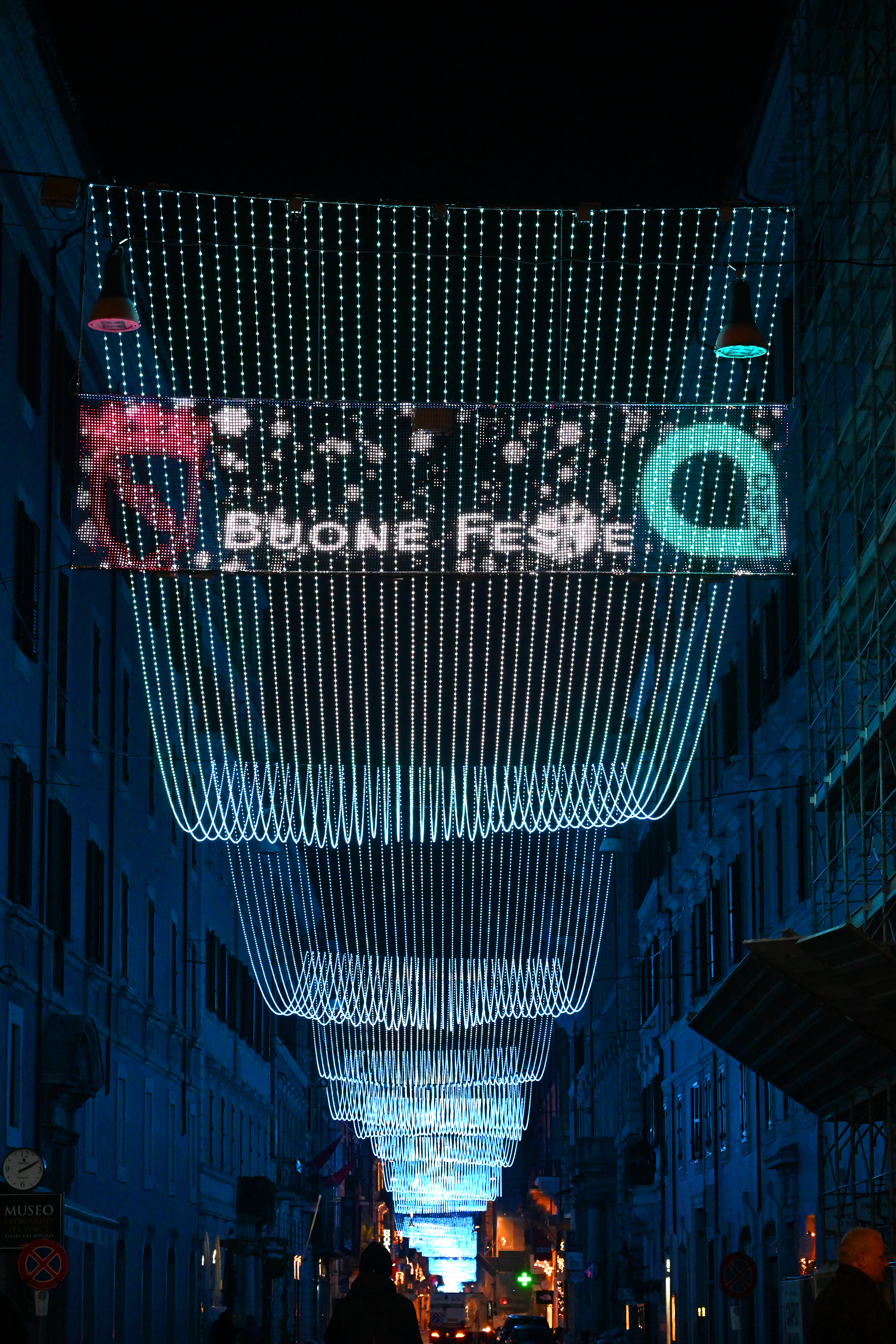 Un cielo stellato, composto da fili di luci, percorre tutta via del Corso e regala ai passanti un effetto scenico estremamente suggestivo.
